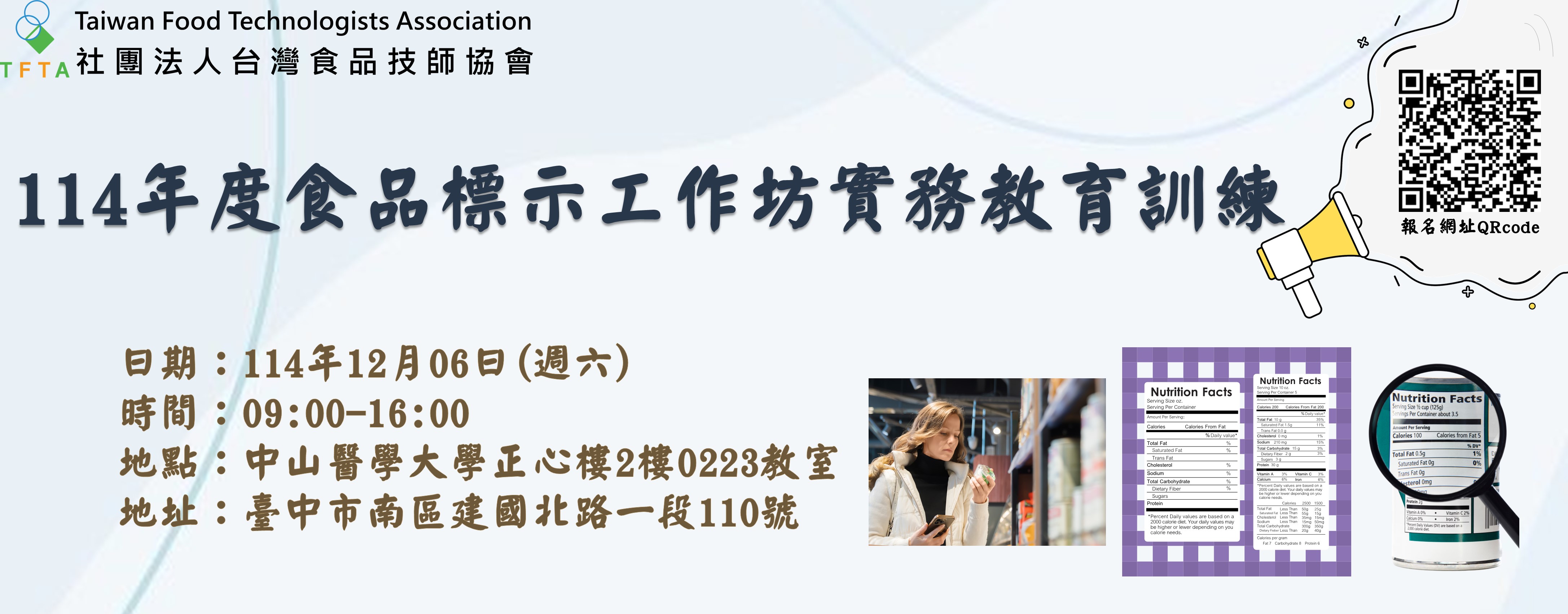 【活動報名】114/12/06 114年度食品標示工作坊實務教育訓練(臺中實體)