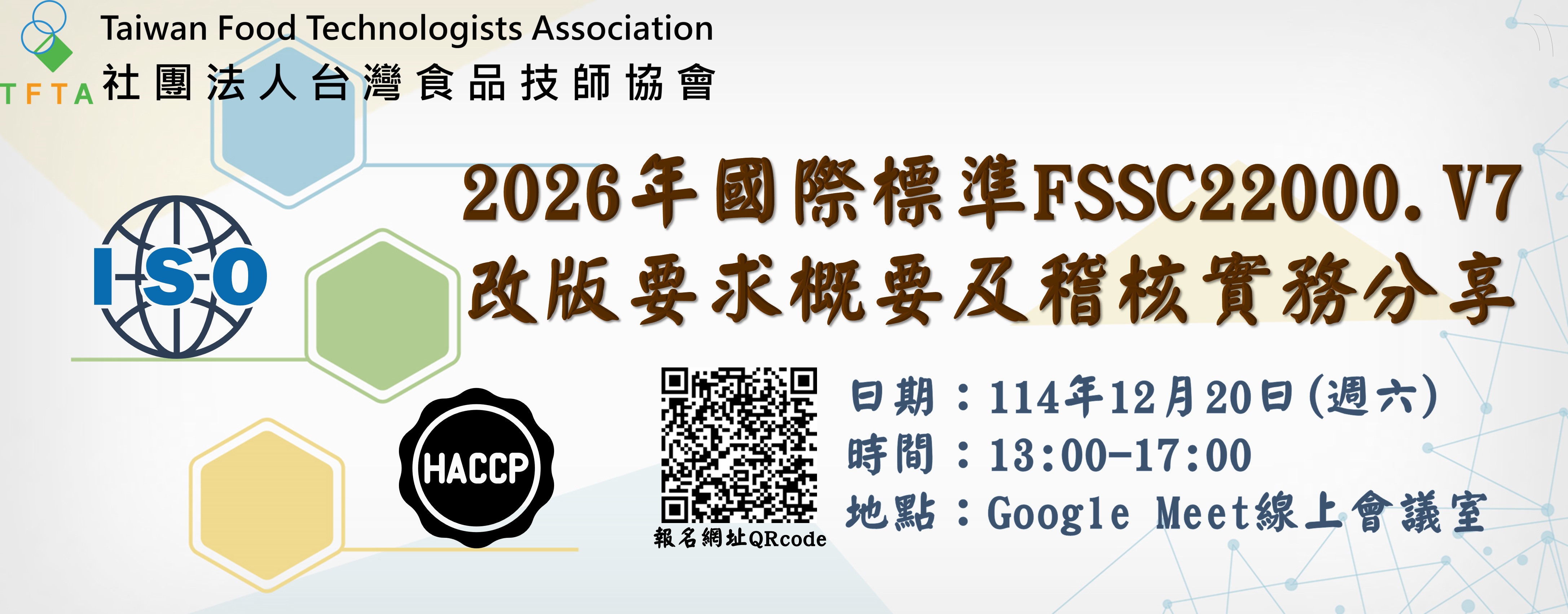【活動報名】114/12/20 2026年國際標準FSSC22000.V7改版要求概要及稽核實務分享(線上)